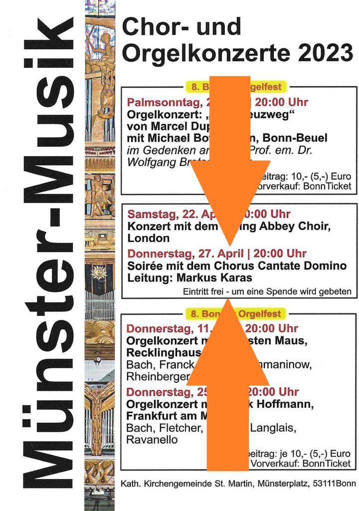 Nach dem Konzert sind Spenden für die Musik am Bonner Münster herzlich erbeten und willkommen.